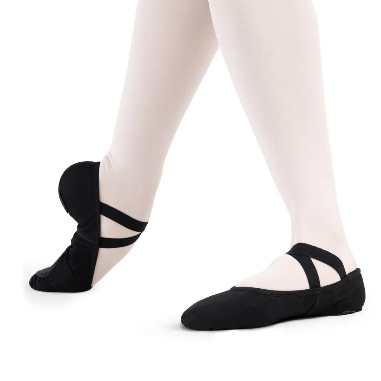 Die Schuhe passen sich der Form des Fußes an, um das Zusammenballen des Stoffes zu minimieren und fließende Bewegungen bei Tanz- und Ballettpositionen zu ermöglichen. Das Obermaterial besteht aus 100 % Canvas, kombiniert mit atmungsaktivem Futter, das Feuchtigkeit ableitet.