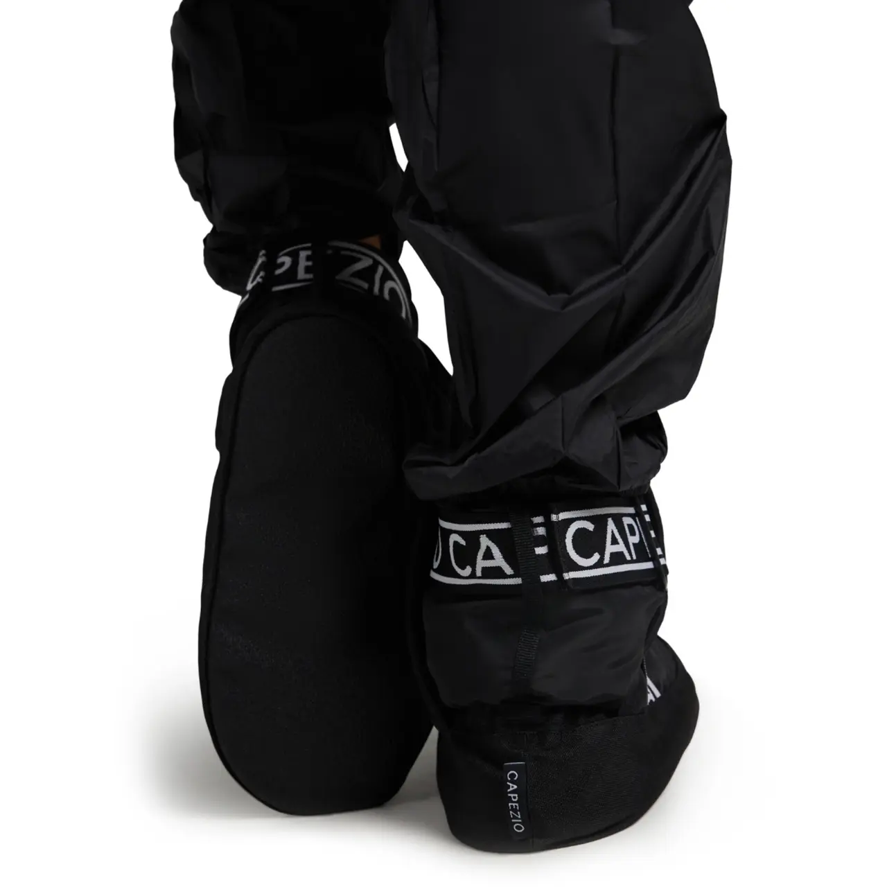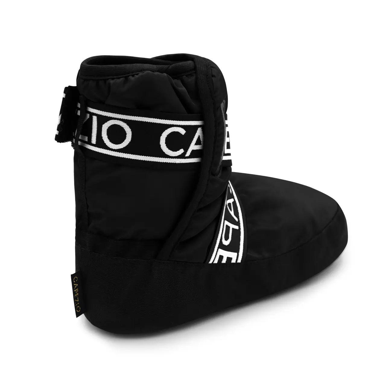 Die rutschfeste, weich gepolsterte Sohle sorgt für stabilen Bodenkontakt und eine gleichmäßige Gewichtsverteilung, wodurch sie ideal für die Bewegung im Tanzsaal sind. Das Außenmaterial aus Taffeta-Polyester in Kombination mit einer weichen Polyesterfüllung bietet eine angenehme Wärmeisolierung, ohne die Bewegungsfreiheit einzuschränken. Elastische, verstellbare Riemen mit dem Capezio-Logo um den Knöchel gewährleisten einen sicheren, bequemen und individuell anpassbaren Sitz.