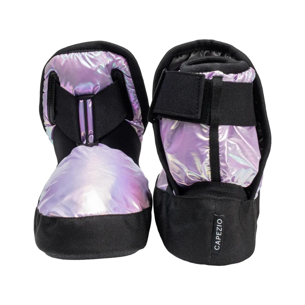 Gönnen Sie kleinen Füßen Wärme, Komfort und Stil vor und nach dem Tanztraining mit den Glam Warmup Booties von Capezio. Diese gefütterten Studio-Booties sind dafür konzipiert, über weichen Ballettschläppchen oder Spitzenschuhen getragen zu werden, um Muskeln und Gelenke auf optimaler Temperatur zu halten und leistungsbereit zu machen.