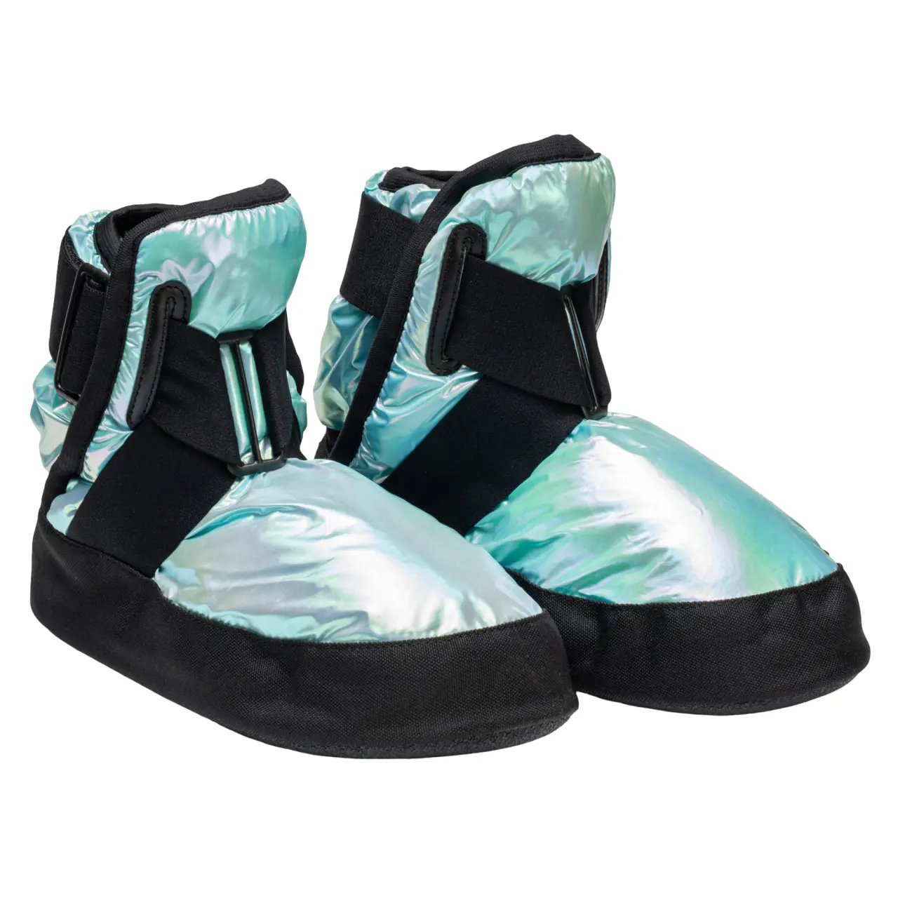 Die rutschfeste, weich gepolsterte Sohle sorgt für stabilen Bodenkontakt und eine gleichmäßige Gewichtsverteilung – perfekt für Bewegung im Tanzsaal. Die leichte, wärmende Füllung hält die Füße warm, ohne die Bewegungsfreiheit einzuschränken. Die glänzende Metallic-Oberfläche verleiht den Booties einen eleganten Glam-Look, und neue Farbvarianten ermöglichen die perfekte Abstimmung auf jedes Tanzoutfit.