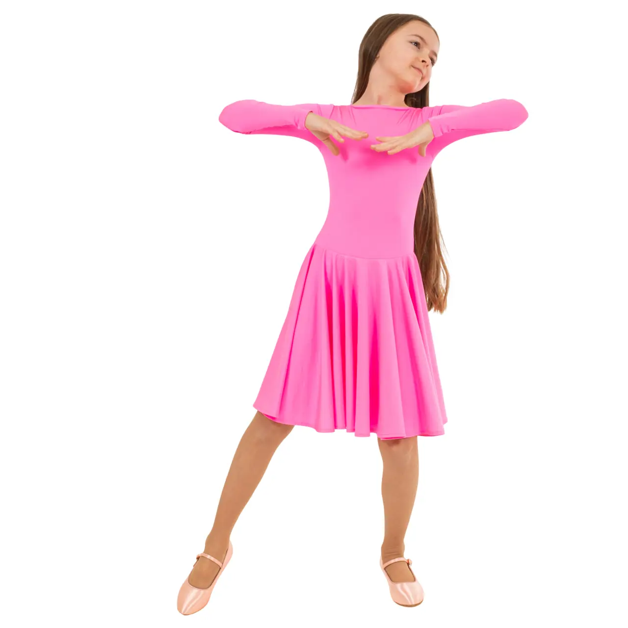 Ein schlichtes Mädchenkleid, ideal für Anfängerinnen bei ihren ersten Wettkämpfen. Es hat lange Ärmel und einen sanften Bogenausschnitt vorne und hinten. Hinten wird es mit einem nahezu unsichtbaren Reißverschluss geschlossen. Das Unterhöschen kann geöffnet werden. Das Material besteht zu 100% aus Polyester. Pflegehinweis: Bitte von Hand in kaltem Wasser waschen und anschließend zum Trocknen frei aufhängen.