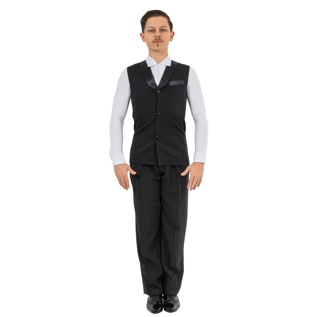 FSD Eliot Herren-Standardtanzweste – die Eliot Herrenweste für Standardtänze mit fein satinierten Revers verleiht dem Tänzer ein elegantes und luxuriöses Erscheinungsbild.